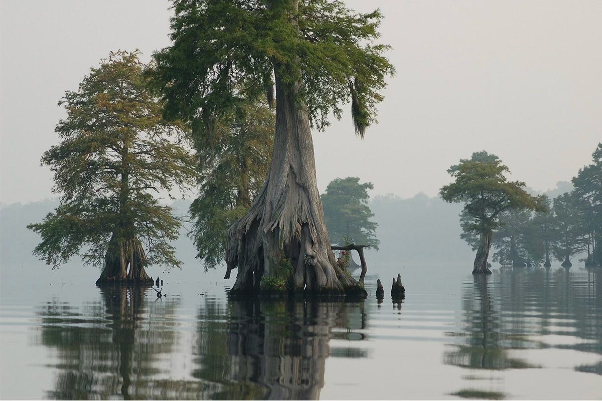 That has turned water, sky, and cane the same soft silver,